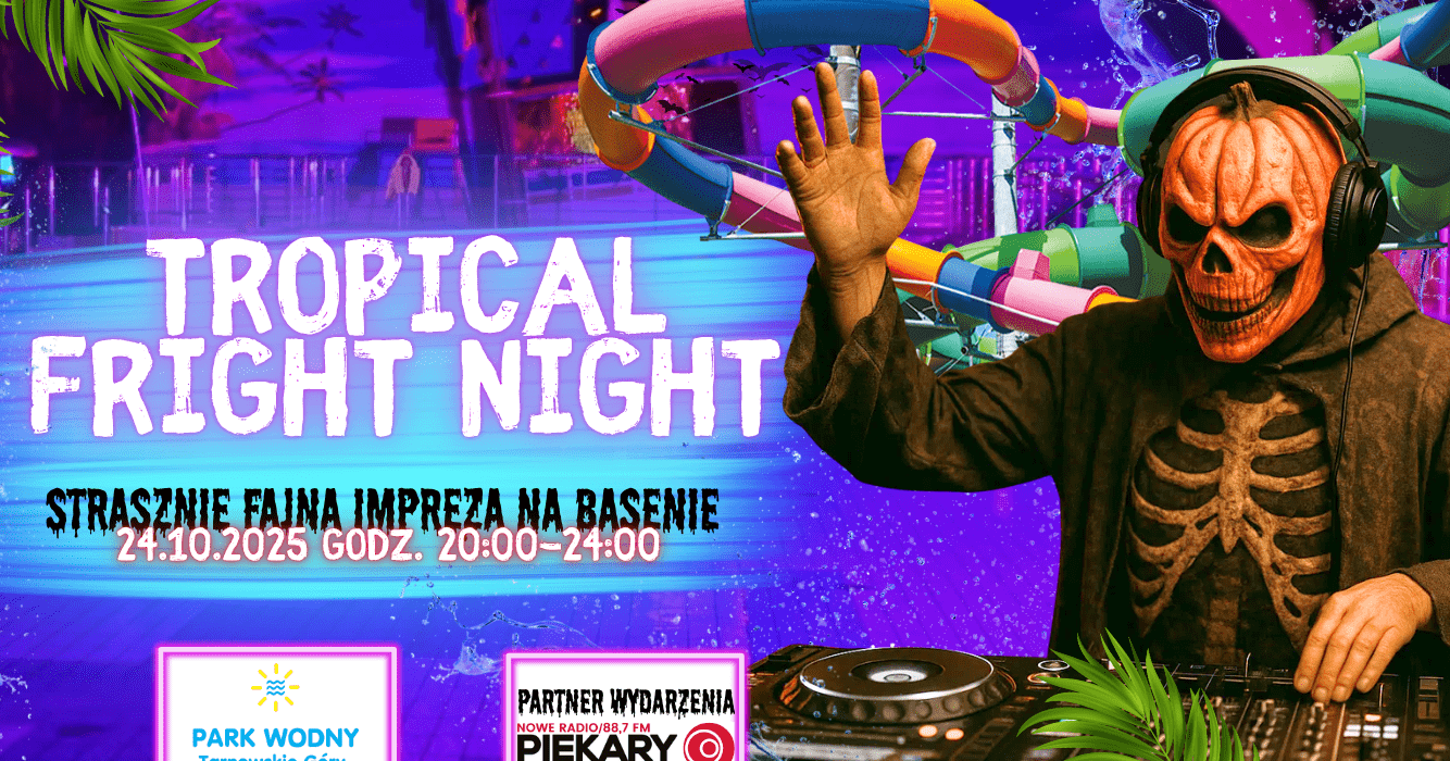Zapraszamy na TROPICAL FRIGHT NIGHT – jedyną w swoim rodzaju imprezę, podczas której woda zawrze nie tylko z emocji, ale też od muzyki, śmiechu i tropikalnych rytmów! W tym dniu WYDŁUŻAMY GODZINY OTWARCIA PARKU WODNEGO, aż do godziny 24:00!