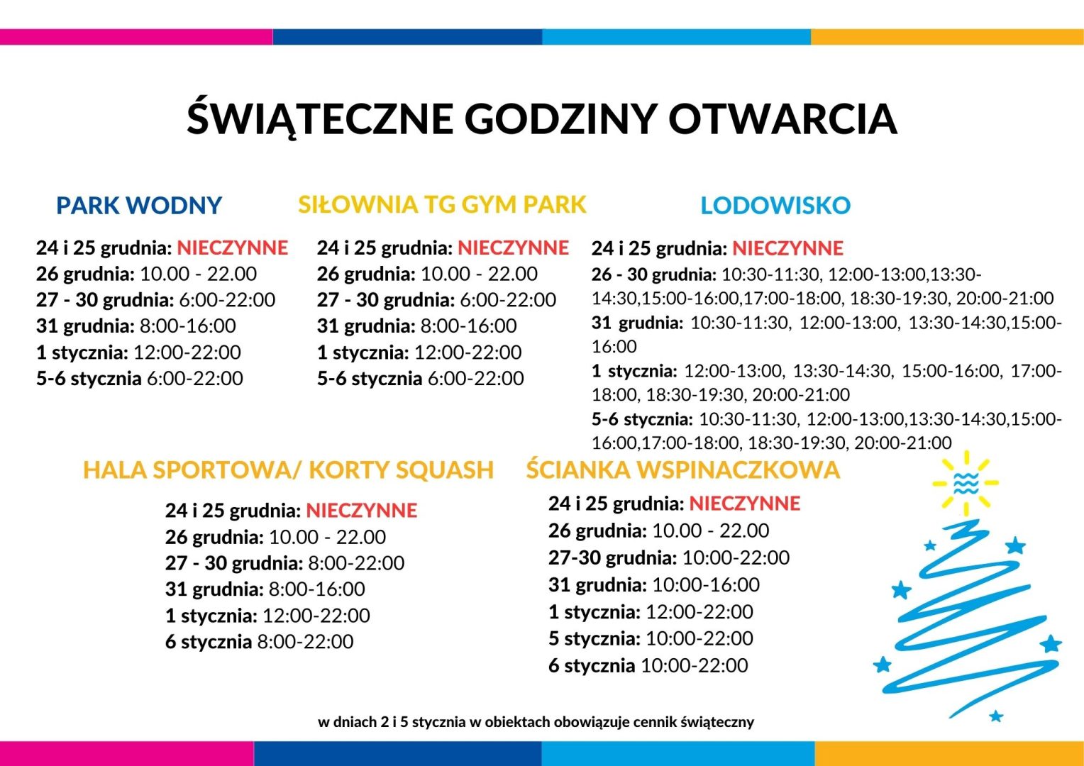 Świąteczne godziny otwarcia naszych obiektów